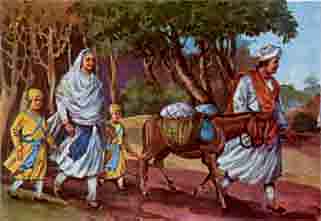 On getting clue, the old Guru’s domestic servant, Gangu arrived the next morning. He requested Mataji’ to go with him to his village. He assured her that their whereabouts will not be known to the Emperor’s officials and they would be quite safe there. |