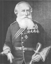 Captain Tebbs died in January, 1852, and was succeeded as Commandant by Captain T. E. Colebrooke. Later in the year the Regiment was selected for active service in Burma and set off down the River Ganges for Calcutta. During the voyage a cholera epidemic broke out and sixty-six men died. The Regiment eventually reached Barrackpore in November, but they were not able to proceed to Rangoon and take part in the Burma expedition, much to the men’s disappointment. The Regiment remained quartered in Barrackpore until the beginning of 1855, when it moved to Mirzapore. Major Colebrooke left the Battalion on the line of march to go on pension, and Lieutenant Brasyer took over command.