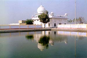 This Gurdwara is associated with the Tenth Guru, Guru Gobind Singh Sahib. He was a child of seven years when he came to Lakhnaur Sahib, the house of his maternal grandparents. Here, he used to play with children of his age. Once, when they were playing with a ball, it fell at this place. There was a big banyan tree here under which lived some lepers. There was a small pond near the tree. Inside the hollow of the tree, a venomous serpent had made its abode. When the ball fell near the tree, the young Guru started towards it. Everybody warned him against going there but he did not heed them. The serpent came out of the tree but was killed with a single arrow of the Guru. It was actually a cursed being whose salvation was ordained at the young Guru’s hands. Seeing this, the lepers too asked the Guru to help them out of their ordeal. He told them to bathe daily in the pond after which they would become free from their disease. Guruji then proclaimed that whosoever would bathe in that pond with a selfless mind would be cured of all diseases