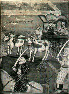| Mother and sons of Guru Gobind Singh, after the Anandpur battle, reach Sirhind, where the princes, Zorawar Singh and Fateh Singh were bricked. |