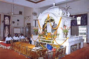 Gurdwara Rakab Ganj stands today on the Pant Road in New Delhi, facing Parliament House and North Block of Central Secretariat. It has the most modern building of white marble surrounded by a beautiful garden.