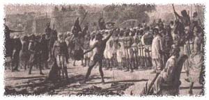 At the message from the boys, Bhai Haqiqat Rai and his father went to the maulvi. As soon as they arrived, the maulvi caught hold of Bhai Haqiqat Rai and started beating him The maulvi beat him to unconsciousness but his anger did not subside. He arrested Bhai Haqiqat Rai and sent him to Amir Beg, the administrator of Sialkot. The next day the qazi said to Bhai Haqiqat Rai in the court, "You have hurt the feelings of believers by calling names to Bibi Fatima for which you should be given severe punishment. For this sin you can be burnt alive after pouring oil on you. you can be torn apart alive from dogs. But your sin may be pardoned if you embrace Islam." Bhai Haqiqat Rai refused to become a Muslim. By order of Amir Beg, Bhai Haqiqat Rai was hanged feet up from a tree and beaten but he did not agree to embrace Islam.