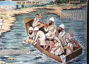 | The Sikhs had robbed the Kartarpur Sodhis of the Adi Granth when Guru Ji was declared the Real Guru. When Guru Ji came to know of this he told the Sikhs to return the Adi Granth. But as the Sikhs were far from the town, the Adi Granth was kept for safe keeping in the river and a message was sent to the Sodhis to recover the Adi Granth from the river bed. The Sodhis could not locate it as they were not mentioning the name of the 9th Guru. When Guru Teg Bahadur Ji’s name was mentioned in the Ardaas, the Adi Granth was located, without any harm done to it by the water. |