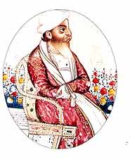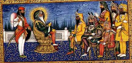 | A shortcoming of paintings of the period of the Lahore court was the relative lack of a variety of subjects. Most of the Lahore court paintings show the seated Maharaja Ranjit Singh with his real and accepted sons Kharak Singh, Sher Singh, the infant Daleep Singh; the favourite boy Hira Singh is also shown with Naunehal Singh; Dhian Singh is respectfully standing at the back and occasionally shown with his brothers Suchet Singh and Gulab Singh of Jammu. Ranjit Singh is sometimes surrounded by his non-Sikh courtiers like his Finance Minister Dina Nath the Brahmin , his Foreign Minister Aziz-ud-din and Jamadar Khushal Singh, who was actually a Brahmin. Also included in some paintings are Europeans who organized his army – the Italians Ventura and Avitabile who were infantry experts, Allard who was his cavalry organizer and another French man, General Court, who trained and equipped his artillery. Also included were his friends from Afghanistan and other European adventurers. (In fact, all these elements of his court are brilliantly portrayed in a later oil painting of August Theodore Schoefft, a Hungarian who visited his court). Coupled with this was the fact that Sikh paintings on subjects other than portraiture were restricted in any case. The miniature paintings, thus, on surface appear to be very limited in diversity but to appreciate them one has to understand the historical events and the intrigues of the court – and then a great drama unfolds, which finally ended when the British defeated Maharaja Ranjit Singh’s successors and disbanded the court of Lahore in 1849. | |