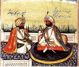 | In the period after the death of Maharaja Ranjit the chief personality who came outmost profitably was Gulab Singh of Jammu Sitting quietly in the comers of paintings, he always played his cards right at crucial points of history. He later bargained with the British for Kashmir, which he obtained after paying with money obtained from his former ruler Ranjit Singh’s treasury. On the death of Naunehal Singh he and his brother Dhian Singh had bargained hard with Sher Singh and Naunehal’s mother. In the process Sher Singh got the Lahore throne and the Koh-i-nur diamond, Dhian became chief minister for life, and Gulab Singh struck a fortune and rode away considerably richer. Sixteen carts were filled with rupees and other silver coins, while 500 horsemen were each entrusted with a bag of gold mohurs, and his orderlies were also entrusted with jewelry and other valuable articles. The costly pashminas, and rich wardrobes, and the best horses in Ranjit Singh’s stables, were all purloined by Gulab Singh on the occasion of his evacuating Lahore, an event which took place on the night following the cessation of hostilities (Latif). According to Smyth, Gulab Singh exercised the most ruthless barbarities, not in the heat of conflict or in the flush of victory only, nor in the rage of an offended sovereign against rebellious subjects; he deliberately committed the most horrible atrocities for the purpose of investing his name with a terror that should keep down all thoughts of resistance to his cruel sway With all this he was courteous and polite in his demeanour, and exhibited a suavity of manner and language that contrasted fearfully with the real disposition to which it formed an artfully designed but still transparent covering. He would be all things to all men, and displayed a readiness to adapt himself to the circumstances even of the humblest of his subjects that would have won all hearts, had not the tiger-nature that crouched beneath this fair-seeming exterior rendered him an object of distrust and terror. | ||||||||||||||||||||||